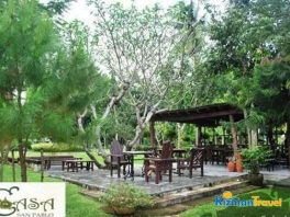 Tucked into a corner of one of San Pablo's still-genteel family compounds, Casa San Pablo is a cozy country inn surrounded by Baguio-like Pine trees and sprawling lawns. It is the country charm that lures the visitors here--- portable hammocks make for moveable feasts, lounging chairs look out into the grove of young palm trees and the swimming pool is surrounded by hundred-year old trees. At night, pathways are lined with candlelight and mats are laid out on the lawn for moon gazing.